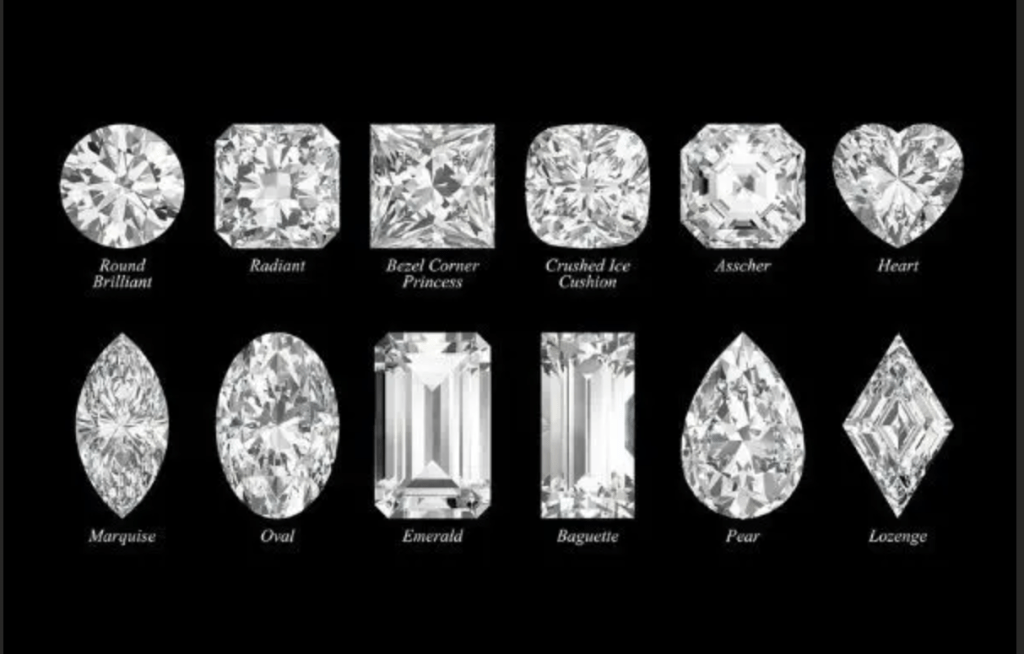 Diamonds come in various shapes and can be set in both gold and silver settings, though white metals are often preferred to enhance a diamond’s apparent whiteness.
